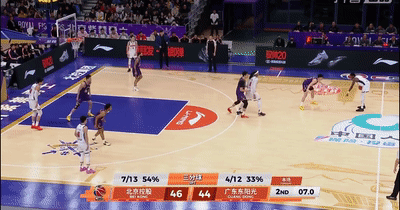 半场战罢,在罚球8-21,三分命中数4-7被北控碾压的情况下,广东依靠萨姆纳萨林杰胡明轩三人合砍的41分(萨林杰半场打满),46-46战平北控。