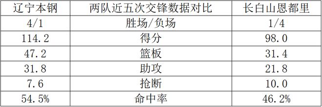 辽宁本钢与长白山恩都里历史上一共交手74次,辽宁本钢51胜23负。
