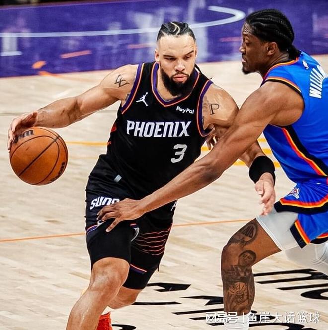 第三节比赛杰威罚球得分,可之后布克频频突到内线得分不说,吉莱斯皮也命中三分,马威内线得分后太阳追平比分,亚历山大命中三分后布克造成杀伤罚球得分,接下来亚历山大、霍姆格伦能够得分,但是马威也在内线得分,布克继续造成杀伤罚球得分,加上狄龙的发挥太阳咬住比分,可之后太阳进攻停滞,米切尔、亚历山大趁机打出一波8-2,末尾阶段太阳打出一波12-3,三节比赛结束太阳反超1分。第四节比赛维金斯、霍姆格伦帮助雷霆完成反超,关键时刻古德温命中三分,雷霆一波6-0后狄龙命中三分,杰威内线得分后古德温又命中三分,接下来两队打得激烈,古德温、狄龙帮助太阳紧追比分,末尾阶段布克、狄龙和古德温更是帮助太阳反超比分,虽然后面霍姆格伦、杰威追平比分,可后续布克命中三分,最终雷霆大爆冷输给太阳。