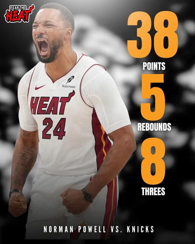 在希罗受伤只打了6场、阿德巴约状态退步的背景下,这个问题应该没有任何悬念,就是诺曼鲍威尔,后者正在打出生涯最强的一个赛季。