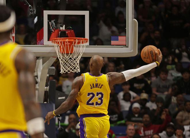 空接暴扣+大风车劈扣!41岁詹皇轰30+8+8再破纪录:湖人双核逞威
