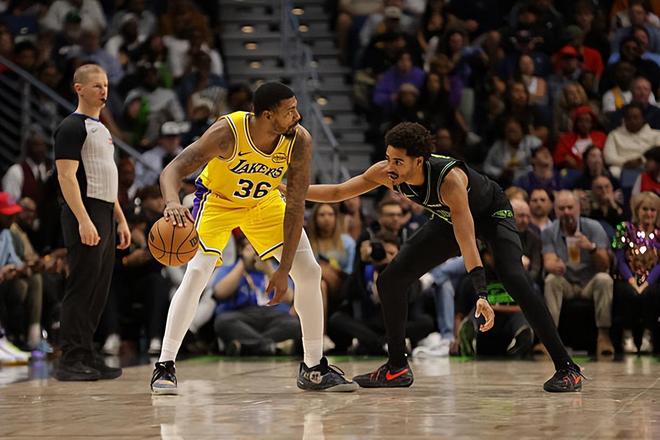 本场比赛中,湖人的先发得分后卫马库斯-斯马特(Marcus Smart)的表现算得上是令人刮目相看。斯马特全场出场36分39秒,投篮10中5,三分线外7中3,得到了13分6篮板4助攻1抢断1盖帽的数据,还有4次失误和3次犯规,正负值也是达到了全队最高的+14。斯马特在进攻端手感不错,在三分线外的表现完全是超出预期的,而且还起到了一些传球和组织方面的作用,他在进攻端的功能非常全面。不仅如此,斯马特在防守端的表现也是非常突出的,同样是展现出了超强的个人防守能力。斯马特在本场比赛中的表现相当不错,他也是将自己各方面的才能都发挥了出来,为球队的胜利做出了自己的贡献。