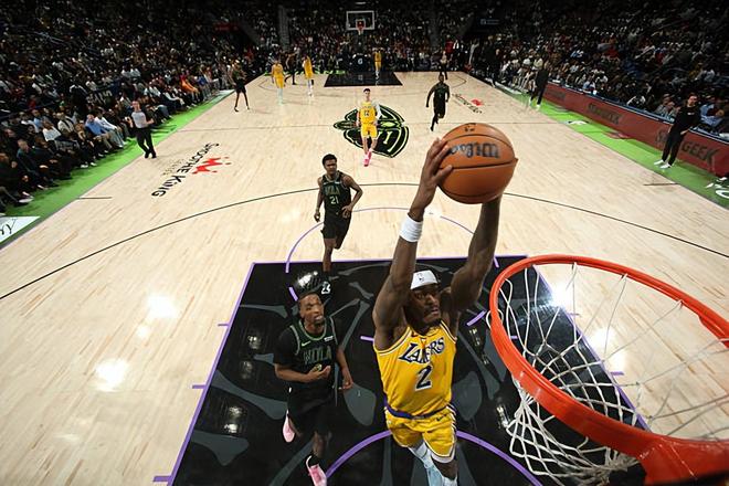本场比赛中,湖人的替补锋线大闸贾里德-范德比尔特(Jarred Vanderbilt)的表现还是相当不错的。范德比尔特全场出场29分22秒,投篮4中3,三分线外1中0,罚球2中1,得到了7分8篮板4助攻2抢断的数据,还有5次犯规,正负值为+3。范德比尔特在进攻端还是能够在对手内线制造一定的威胁的,也是得到了一些分数的,而且他在传球和策应方面的表现也是远超预期的。范德比尔特在防守端的表现更是可圈可点,他有着极其出色的个人防守能力,有着超高的防守积极性,给对手制造了巨大的压力。总体来看,范德比尔特在攻防两端的表现都是比较可靠的,他也是为球队在本场比赛中的胜利做出了不小的贡献。