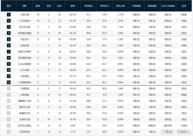 CBA排名榜