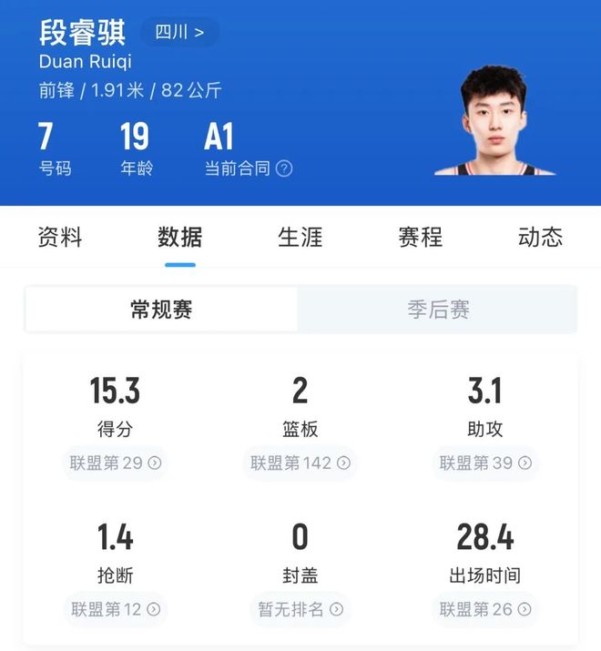 段睿骐第一年打CBA就有这么亮眼表现,不仅对四川男篮,对中国男篮未来都很有益。