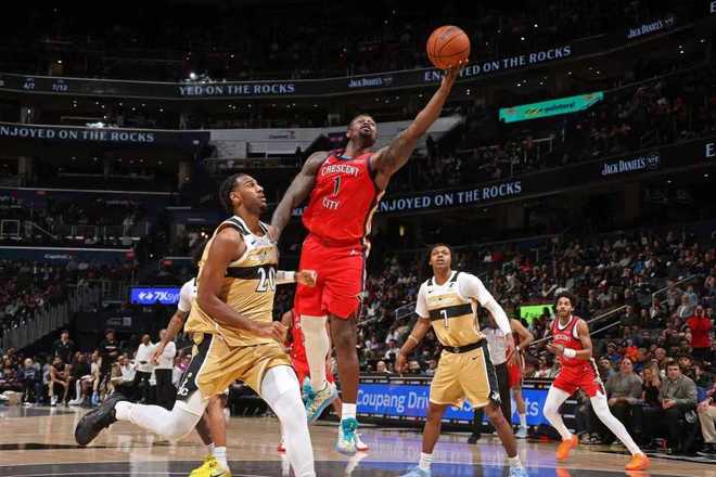 鹈鹕过去9场遭遇9连败稳居西部倒数第一,奇才上一场客场110-131输给76人。本场奇才缺少特雷-杨与惠特摩尔,鹈鹕缺少琼斯、穆雷、阿尔瓦拉多与贝。首节开局鹈鹕8-2领先,奇才一波7-0攻势反超比分,双方缠斗至鹈鹕16-17落后。锡安连续冲击内线引领一波9-0攻势反超8分,奇才逐步缩小差距,首节结束鹈鹕28-26领先奇才。首节鹈鹕24中11,其中三分11中4,锡安4中4得到9分;奇才30中10,其中三分12中3。