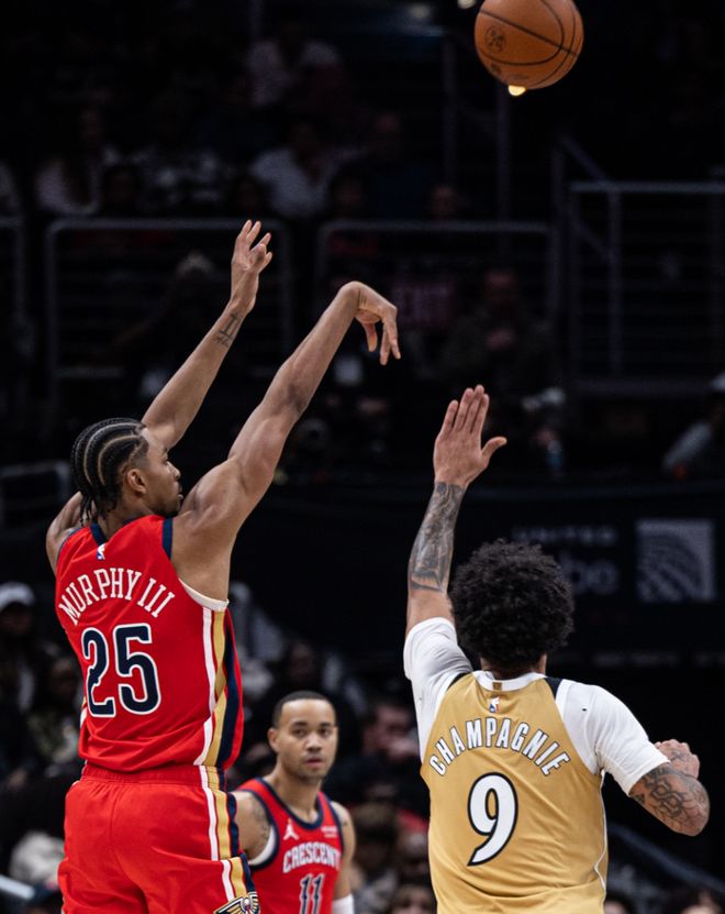 全场比赛打完墨菲、锡安两人都拿到了30+的数据,锡安全场比赛14中12拿到31分4篮板3助攻;墨菲全场比赛24中13+三分16中7拿到35分8篮板4助攻3抢断,墨菲最近的两场比赛合计拿到77+13个三分。