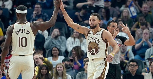 勇士两连胜,库里27分10助攻,梅尔顿19分,巴特勒15分6篮板6助攻,格林11分6篮板8助攻。