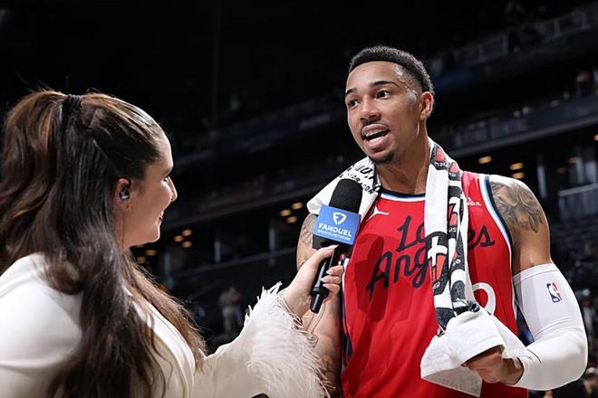 本场比赛中,快船的替补侧翼新星乔丹-米勒(Jordan Miller)的表现算得上是相当突出。米勒全场出场27分09秒,投篮13中9,三分线外4中3,拿下了21分5篮板的数据,正负值为+10。值得一提的是,21分也是米勒本赛季的单场第二高分。米勒在进攻端展现出了全面的得分能力,他有着不俗的突破能力和终结能力,他在外线投篮方面的表现也是值得肯定的,他的持球进攻能力相当全面,他在进攻端完全是势不可挡,通过各种方式拿下了大量的分数,为球队提供了不小的支持。米勒在防守端的表现也算是中规中矩,也能够起到一定的作用。总体来看,米勒在本场比赛中很好地扮演了自己的角色,展现出了一名优秀的超级第六人应有的实力,他的一系列不俗表现也是为球队的胜利做出了不小的贡献。