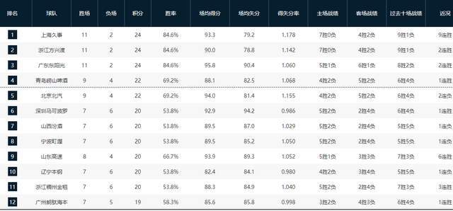CBA常规赛第十三轮已经全部打完,经过这轮比赛之后,积分榜排名又被重新打乱。北京首钢输给深圳男篮已经遭遇两连败,排名也是跌至第五,上海、广厦、广东、青岛四队同时赢球,目前暂列联赛前四的位置,山东男篮则是后来居上,在本轮击败南京同曦之后,山东男篮已经冲到第九的位置,从战绩来看,山东男篮已经逼近前四。本赛季CBA除了江苏、四川这两支球队,其他18支球队没有真正意义上的弱队,季后赛12强每轮过后都有新的变化。