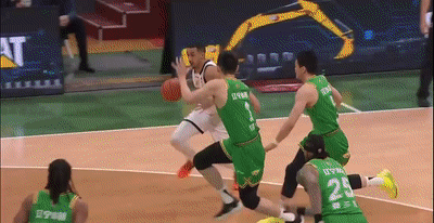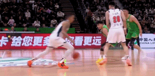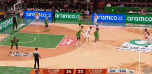 6分27秒,王岚嵚打进高难度折叠上篮2+1,但随后奎因再飚进2记三分,半节连拿9分,帮助广东扩大领先来到45-31!