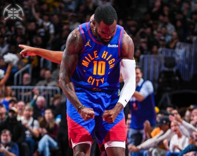 在二人的梳理之下,掘金一共有5名球员得分上双,其中替补出战的小哈达威一个人命中5记三分球飙下了25分,同样替补的纳吉,则用14+10+3+2+2填满了数据栏,为超级残阵的掘金捍卫主场,立下了汗马功劳。