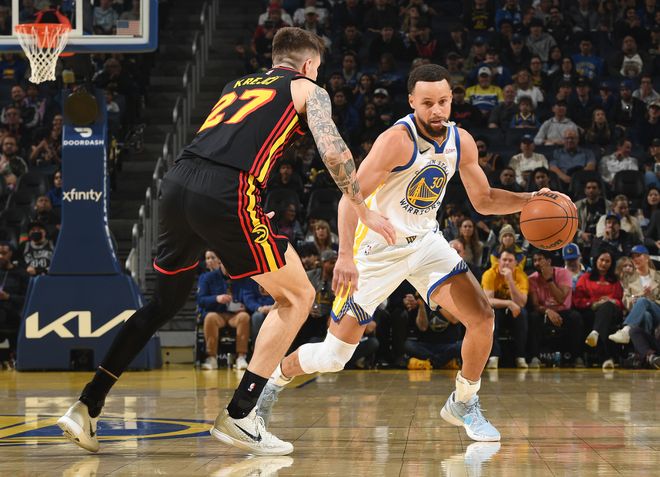 这场比赛老鹰开场是让丹尼尔斯去贴库里,丹尼尔斯作为联盟最出色的防守球员之一的确让斯蒂芬很难受,但他下场后换麦科勒姆盯库里就失去效果,库里首节7中3+三分4中1拿到9分1助攻1失误。