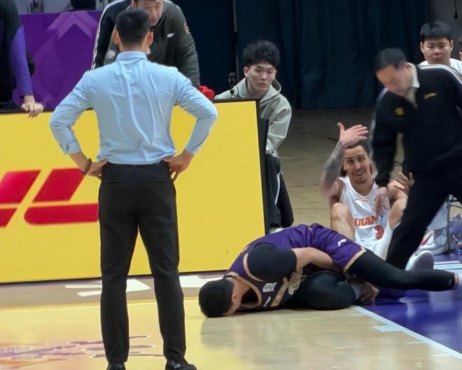 第三节还剩5分48秒阶段,沈梓捷在一次防守过程中不幸踩中特莱斯再次出现崴脚,痛苦倒地。
