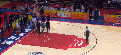 天津客场98-93击败广州龙狮,在比赛第四节还剩5分钟阶段的一次篮下拼抢中,赖俊豪在底线附近和李祥波发生身体对抗,悲催的赖俊豪,在救球过程中身体飞出界外,脑袋直接撞到了场边的广告牌上,一度出现了晕厥的情况。