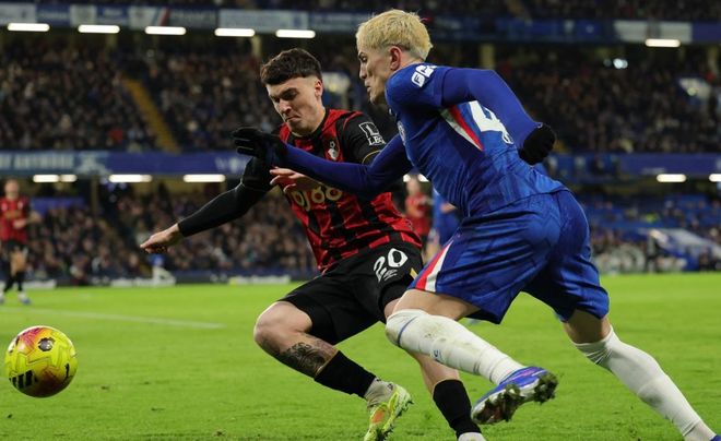 下半场易边再战,切尔西进行换人调整,佩德罗-内托和里斯-詹姆斯替补上场。第48分钟,塞门约在禁区外起脚兜射,踢高了。7分钟后,古斯托禁区内手球,裁判没有任何表示。第55分钟,德拉普头球攻门,顶偏了。第64分钟,埃斯特旺的低射被门将神勇扑出。第76分钟,恩佐-费尔南德斯推射踢高。最终,切尔西2-2伯恩茅斯。