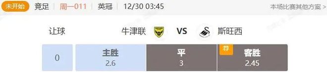 竞足 周一011 英冠 牛津联VS斯旺西