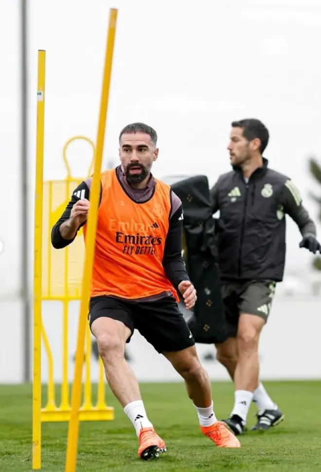 卡瓦哈尔因右膝关节游离体接受手术近70天后,这名边后卫已启动循序渐进的合练进程,并在当天完成了与球队的部分训练。这一积极进展,使他仍保有入选西班牙超级杯名单的可能性。对皇家马德里主帅哈维-阿隆索而言,这是一则利好消息。