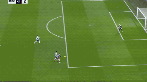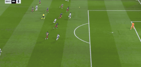 真正精彩的剧情在85分钟后上演,第86分钟,费尔明贴着防守球员完成摆脱,之后送出妙传,奥尔莫不停球兜射死角,打破僵局。