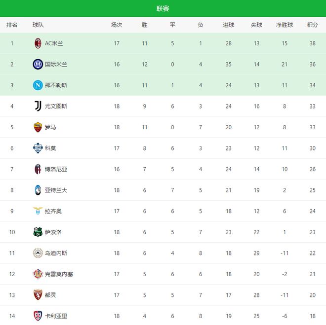 随着这两场比赛结束,意甲积分榜的格局也逐渐清晰。AC米兰先赛领跑国际米兰2分,占据主动;尤文和罗马同时掉链子,争冠与争四形势开始收紧;而亚特兰大的这场胜利,则让欧战区的竞争重新燃起悬念。从目前意甲积分榜来看,争冠与争四开始出现的分水岭,竞争相当的残酷!