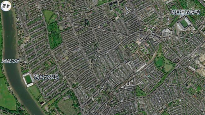 目前英超最近的两个主场是切尔西的斯坦福桥球场和富勒姆的克拉文农场,直线距离约2100米;此前英超最近的两个主场是埃弗顿的古迪逊公园和安菲尔德球场,直线距离约720米。