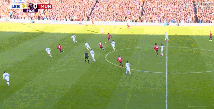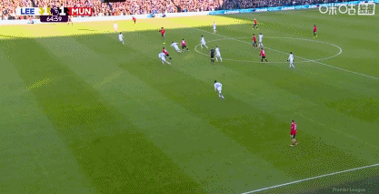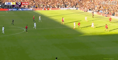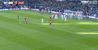 第62分钟,海文防守不利,阿伦森小角度破门,利兹联1-0领先曼联!