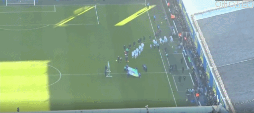第23分钟,现场球迷全体起立鼓掌,向一名去世的球迷致敬