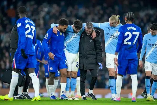 曼城眼看到手的3分,一下子变成了1分。而在上一轮比赛中,曼城客场0-0闷平桑德兰,他们赛季首次遭遇两连平。在积分榜上,曼城与阿森纳的积分差距一下子拉大到了6分。更让蓝月球迷担忧的是,球队的主力中卫组合格瓦迪奥尔和鲁本-迪亚斯在比赛中全部因伤离场。赛后瓜帅表示,他们的情况并不乐观,可能会缺席几周时间。
