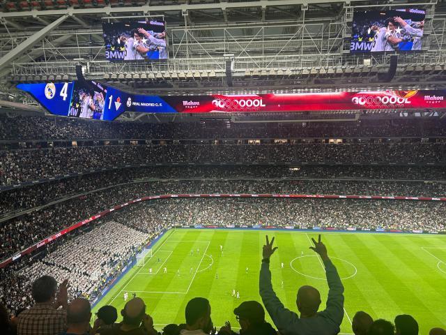 “皇马再入一球,贡萨洛的帽子戏法!”贡萨洛戴帽之际,伯纳乌现场进球播报并未按照惯例仅报送进球队员,而是特别强调了这位小将的成就。伯纳乌死忠看台也在这一刻高唱,“贡萨洛是真正的马德里主义者!”即使是再资深的皇马球迷,也太久没有见到过此等神迹:皇马青训出产的本土年轻射手,在伯纳乌主场上演完美帽子戏法。比赛最后阶段阿隆索将贡萨洛替换下场,伯纳乌全场掌声雷动,球迷们高呼着贡萨洛的名字,向这位小将表示由衷祝贺。