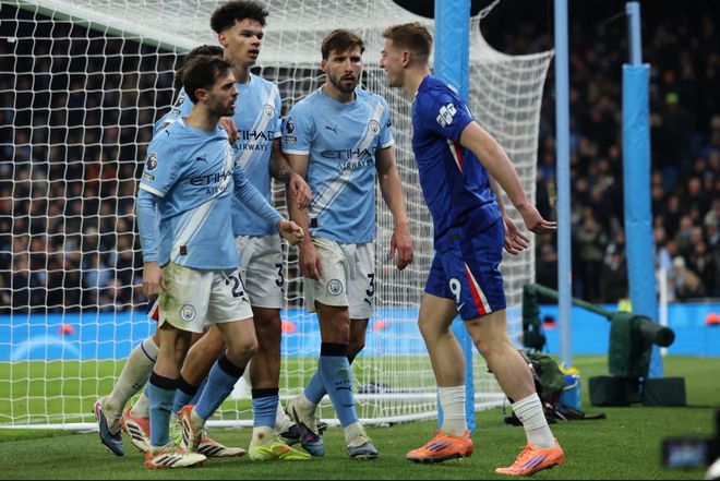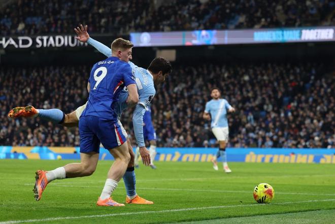 虽然赖因德斯的进球还是为曼城取得了领先,但意外却接踵而来。下半场,迪亚兹和格瓦迪奥尔接连受伤下场,两大主力中卫全部挂彩,曼城最终还是未能顶住切尔西最后时刻疯狂反扑——多纳鲁马竭尽全力也无法阻挡恩佐读秒阶段禁区内3连击。