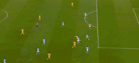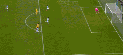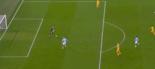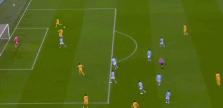 伤停补时阶段,多库左路直传,阿克下底传中,赖因德斯后点推射,范黑克门线前解围,曼城1球领先进入更衣室。