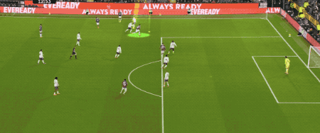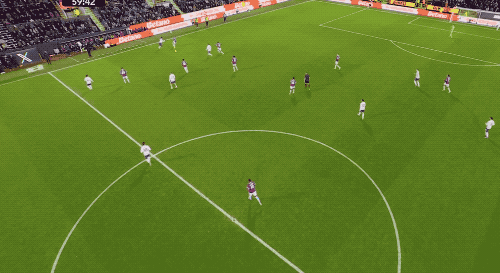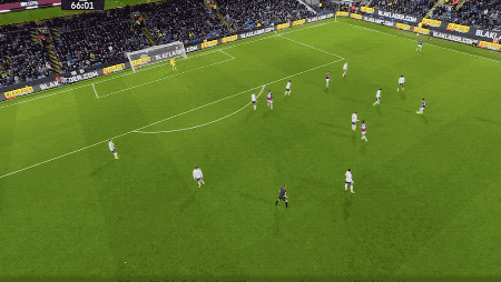 第70分钟,格罗斯一脚斜传打到左路,努内斯头球冒顶,三笘薰杀入禁区横敲,迭戈-戈麦斯门前推射踢呲,皮球击中多纳鲁马之后反弹,三笘薰极限射门补射,击中边网。
